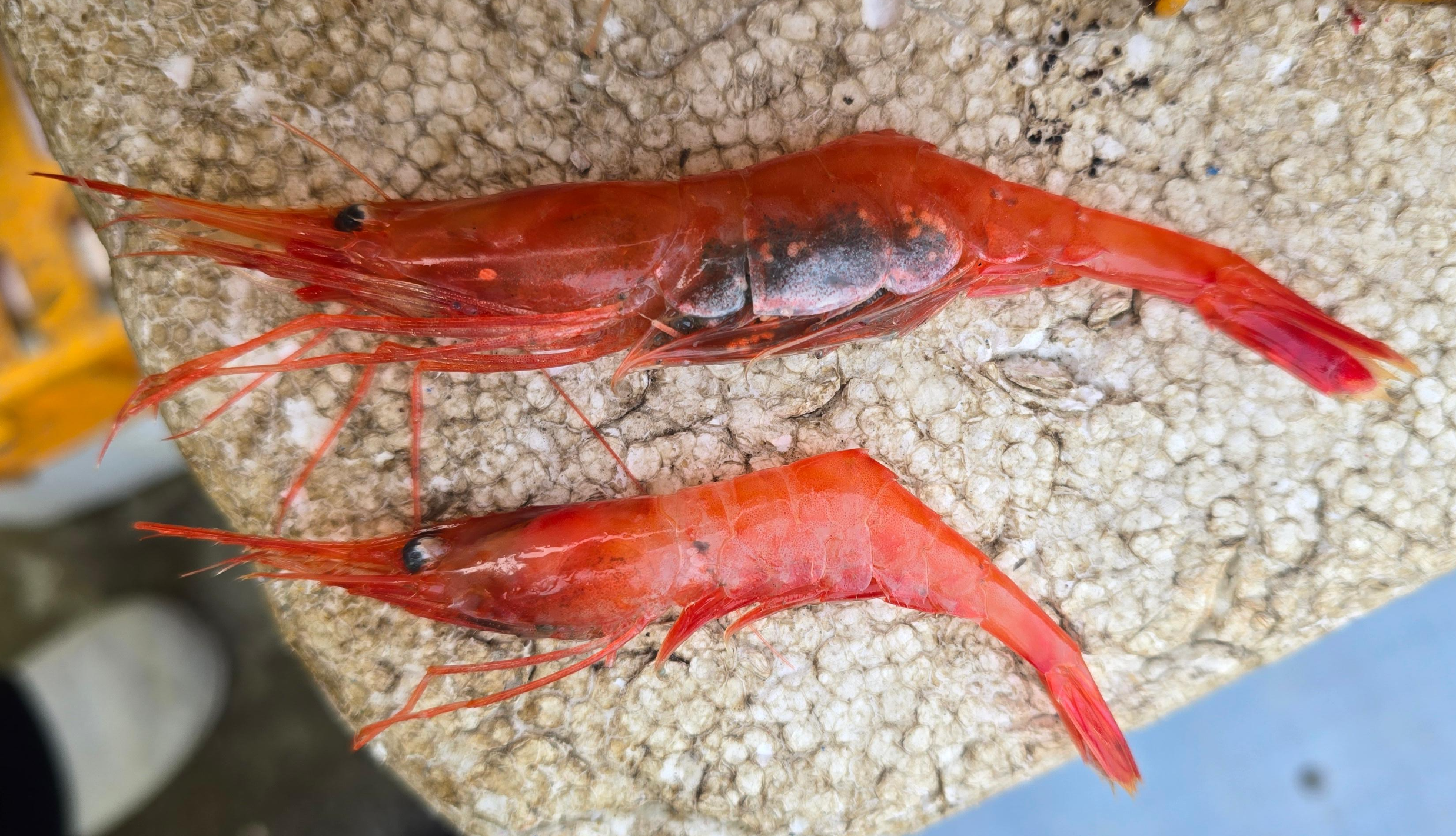 오후가 되자 배에서 가자미와 붉은 새우가 들어온다. 서해에서는 자하젓, 오젓, 육젓, 추젓, 동젓 등 새우젓을 담글 수 있는 해산물을 많이 볼 수 있는데, 동해에서는 도화새우, 닭새우, 독도새우, 꽃새우, 단새우 같은 붉은 새우를 볼 수 있다.